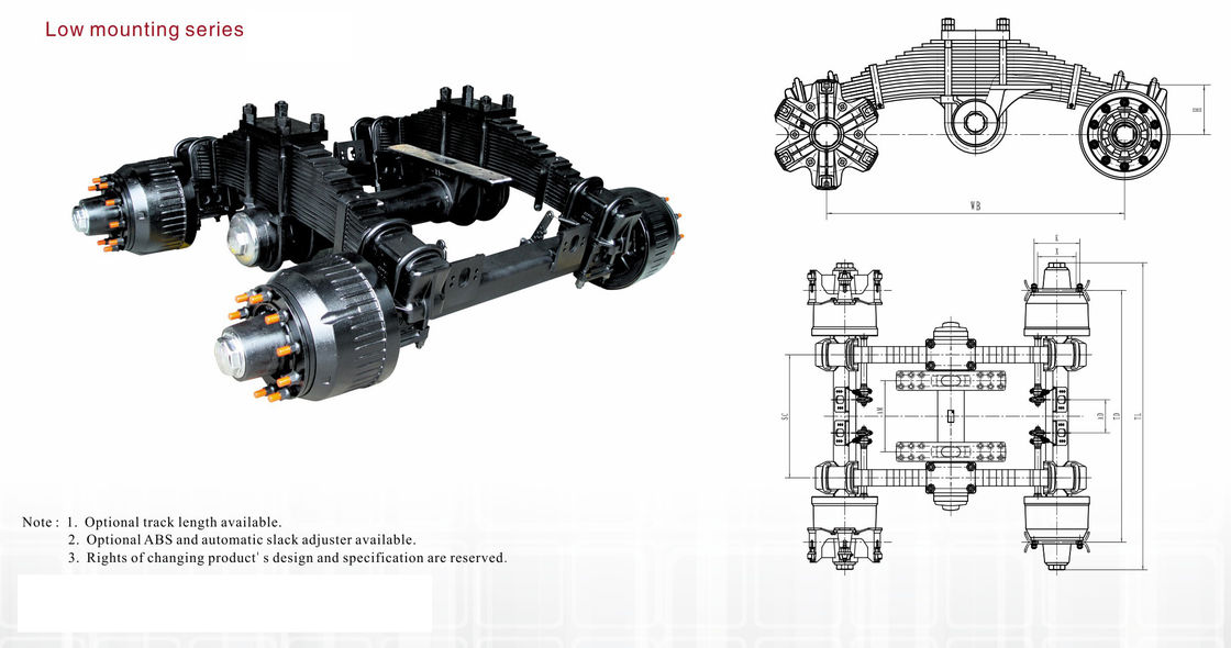 Kamyon Trakörü Mekanik süspansiyon, Bogie süspansiyon, düşük montaj serisi, 24T, 28T, 32T, 36T